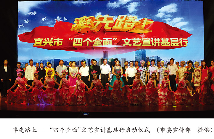 【理论武装】 深入学习贯彻习近平总书记系列重要讲话精神,创新理论宣传教育形式,创作策划“四个全面”战略布局的文艺作品,举行“率先路上——‘四个全面’文艺宣讲基层行”启动仪式及巡演活动,共巡演9场,覆盖13个镇(园区、街道),受到省、市领导和市民的好评。在《宜兴日报》开设“领导干部学习论坛”专栏,出刊22期,刊出文章86篇,集中交流党政领导干部理论学习的所思、所感、所悟。探索理论武装与推动工作相契合的新思路,结合全市项目观摩活动,召开调研成果现场交流会,以调研思考来解难题、求创新、促发展。扎实推进马克思主义大众化,“课前五分钟:合微成宏”等3个案例入选“无锡市马克思主义大众化创新案例”;创新“微分法”冬训形式,宜兴市被授予“江苏省冬训工作示范县(市)”称号。每季度推荐基层党(工)委(组)中心组学习阅读书目,推送“手机微学堂”13期,在宣传部网站刊登学习材料60余篇,及时传送最新理论学习内容。完成《党员知音》全新改版,共刊发12期、近40万册。